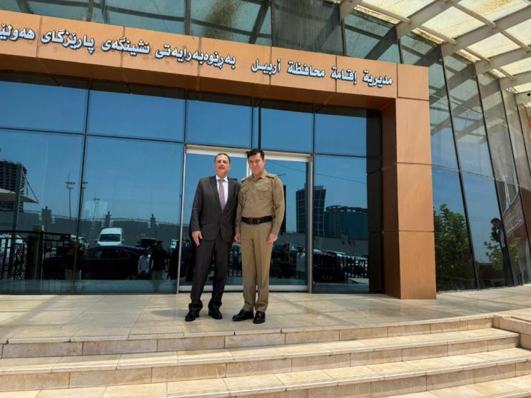 من جهته، أعرب العميد كامل محمد باقر حسن عن ترحيبه بالقنصل العام، مؤكدًا التزام مديرية الإقامة بدعم أبناء الجالية الفلسطينية، والعمل على حل الإشكاليات المتعلقة بإقامتهم ضمن رؤية تهدف إلى "تصفير مشكلات الإقامة"، مشددًا على أن التوجيهات الصادرة من القيادة الكردية واضحة بهذا الشأن.