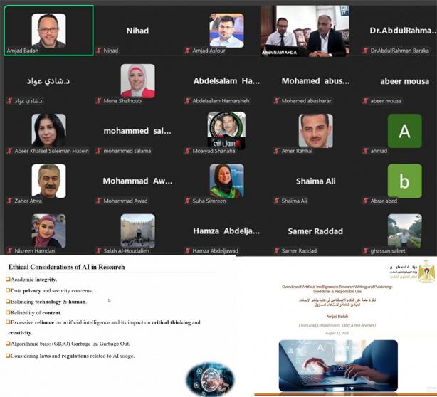 واستهدفت الورشة، التي قدَّمها المختص د. أمجد بدح؛ العديد من الباحثين من مؤسسات التعليم العالي، وباحثين وأكاديميين عاملين في مجالات العلوم الإنسانية والاجتماعية، وذلك بهدف تمكينهم من توظيف أدوات الذكاء الاصطناعي بشكل فعّال في إنجاز مشروعاتهم البحثية، إذ تمّ تكرار التدريب على فترتين زمنيتين مختلفتين لضمان إتاحة الفرصة لأكبر عدد من الباحثين للمُشاركة.