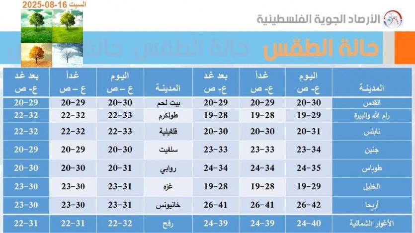 وفيما يلي درجات الحرارة العظمى والصغرى المتوقعة: