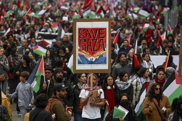ودعا المحتجون المجتمع الدولي، ولا سيما الاتحاد الأوروبي، إلى التحرك وعدم الوقوف مكتوفي الأيدي إزاء "المجازر الإسرائيلية التي وصلت إلى حد الإبادة الجماعية".
