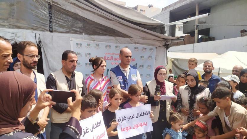 شاركت مؤسسة الضمير لحقوق الإنسان، صباح الاثنين الموافق 25/8/2025، بوقفة تضامنية للأطفال في ساحة مركز التضامن الإعلامي بمدينة غزة، للمطالبة بإنهاء الحرب والانتهاكات المستمرة التي يتعرض لها الأطفال في قطاع غزة.