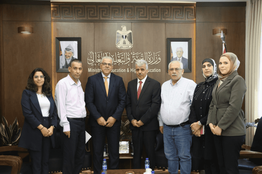 التقى وزير التربية والتعليم العالي أ.د. أمجد برهم، في مكتبه اليوم، مدير عام جمعية البنوك في فلسطين د. بشار ياسين، بحضور ممثلي الجمعية والوزارة، وذلك لمناقشة فرص التعاون المشترك في إطار المسؤولية المجتمعية للبنوك ودورها في دعم قطاع التعليم الفلسطيني في ظل الظروف الراهنة.