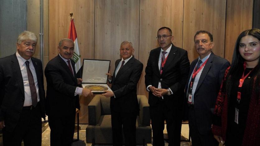 بدوره، أعرب د. محمد اشتية عن شكر وتقدير فلسطين لمواقف العراق التاريخية الداعمة لقضيتها وحقوق شعبها المشروعة، مقدّماً باسم الوفد درع فلسطين لفخامة الرئيس تقديراً لجهوده ومساندته الثابتة.