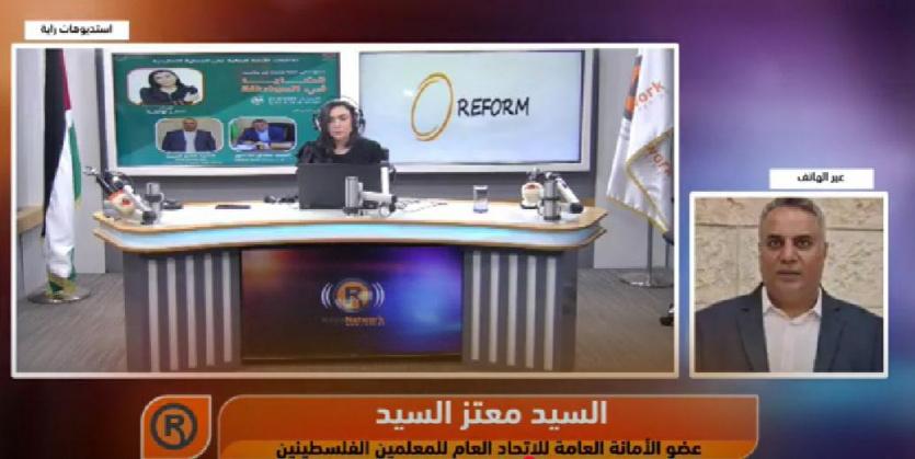 وشارك في الحلقة السيد معتز السيد، عضو الأمانة العامة للاتحاد العام للمعلمين الفلسطينيين، حيث عرض رؤية الاتحاد في التعامل مع الأزمة، ومطالب المعلمين، والمخاطر التي تهدد انتظام العام الدراسي.