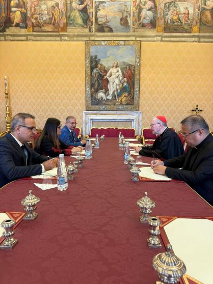 وأكد الكاردينال بارولين موقف الفاتيكان الثابت في دعم العدالة والسلام، مؤكدًا حرصه على متابعة الأوضاع الإنسانية والدعاء من أجل إنهاء المعاناة وتحقيق السلام العادل والشامل في الأرض المقدسة