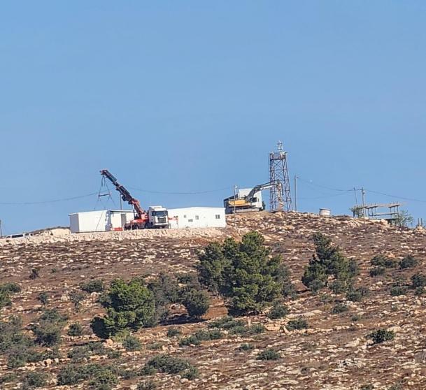 نصب مستوطنون، اليوم الأربعاء، بيوت متنقلة "كرفانات" على أراضي قرية الريحية، جنوب الخليل.