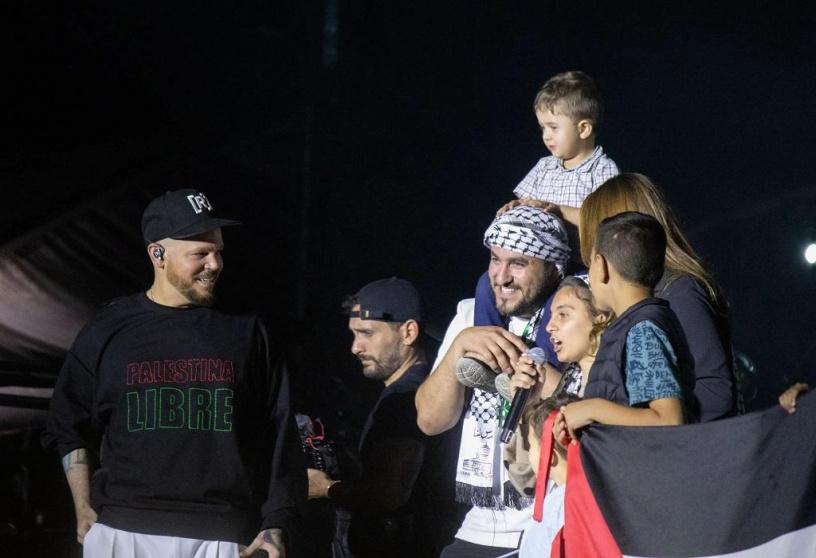 وارتدى ريزيدينتي قميصا كُتب عليه بالإسبانية "فلسطين حرة"، وأوقف أداءه ليدعو إلى المسرح خمسة أطفال من عائلة عابد، الذين وصلوا مؤخرا إلى المكسيك كلاجئين من غزة، إلى جانب سفيرة فلسطين نادية رشيد. رفع الأطفال العلم الفلسطيني، وأخذت الطفلة ألما عابد الميكروفون لتصرخ بقوة: "أوقفوا الإبادة الجماعية! عاشت فلسطين! الحرية لفلسطين!"، فرددت الحشود كلماتها في مشهد مؤثر غمر الساحة.