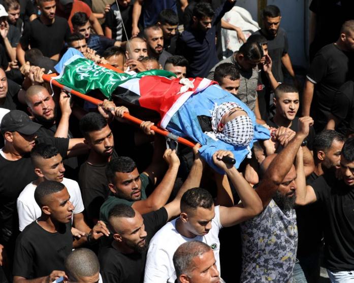 وندد المشاركون في موكب التشييع بجرائم المستوطنين المتصاعدة.