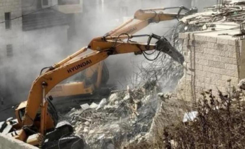 هدمت قوات الاحتلال الإسرائيلي، اليوم الخميس، أسوارا في بلدة قطنة شمال غرب القدس.