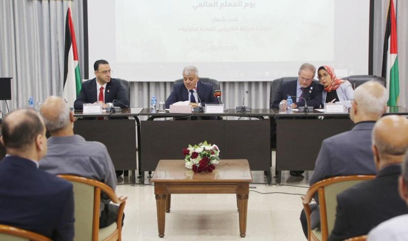 أكد مسؤولون ونقابيون أهمية حماية المعلمين الفلسطينيين، وصون رسالتهم رغم الظروف والتحديات الراهنة، وتكريس كل أشكال الإسناد والتضامن العالمي مع معلمي ومعلمات فلسطين؛ والتأكيد على مهنة التدريس كمهنة تعاونية وإنسانية، مستذكرين الشهداء من المعلمين والطلبة الذين ارتقوا خلال العدوان الاحتلالي المتواصل.