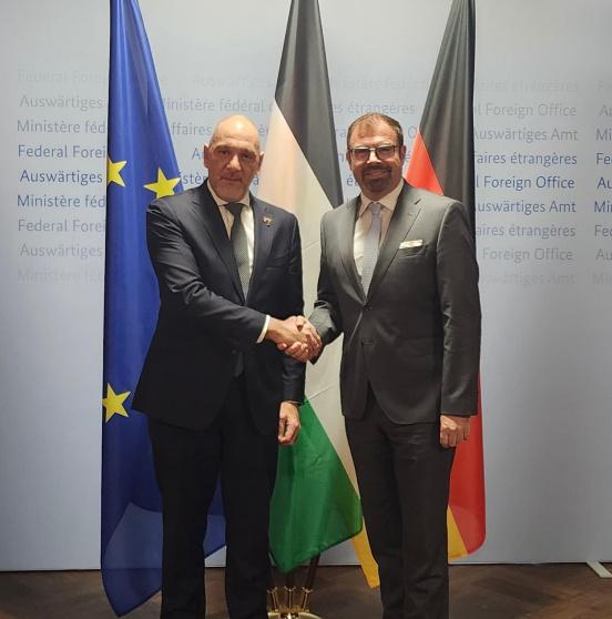 اجتمع السفير ليث عرفة، سفير دولة فلسطين لدى ألمانيا، مع وزير الدولة في وزارة الخارجية الألمانية السيد فلوريان هان، وذلك في مقر الوزارة ببرلين.
