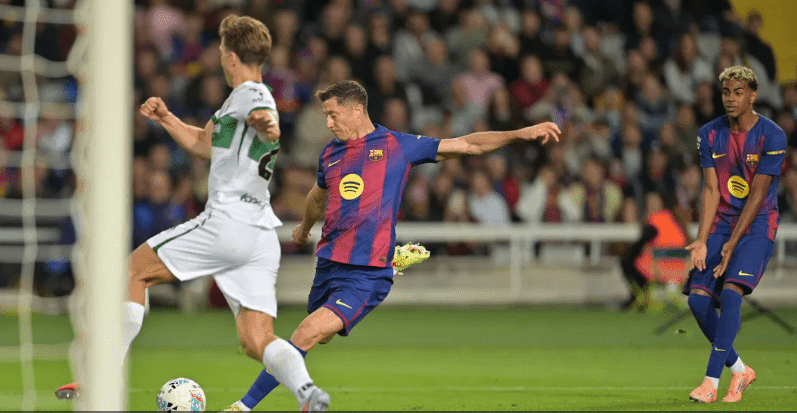 واستغل الفريق هفوتين دفاعيتين من جانب إلتشي في الدقائق الأولى، ليتقدم بهدفين عن طريق يامال وتوريس في الدقيقتين التاسعة والحادية عشرة.
