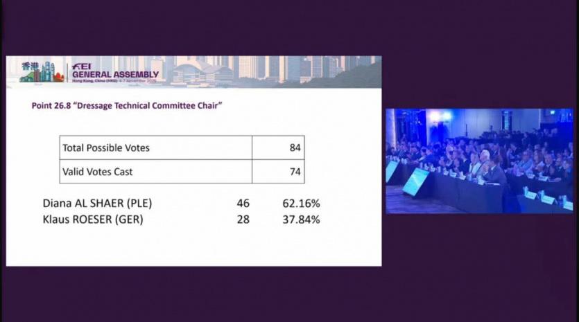 وحصلت الشاعر على 46 صوتاً من أصل 74، أي ما نسبته 63% من أصوات الجمعية العمومية، في انتصار وُصف بأنه “رسالة فلسطينية راقية على صهوة الخيل”.