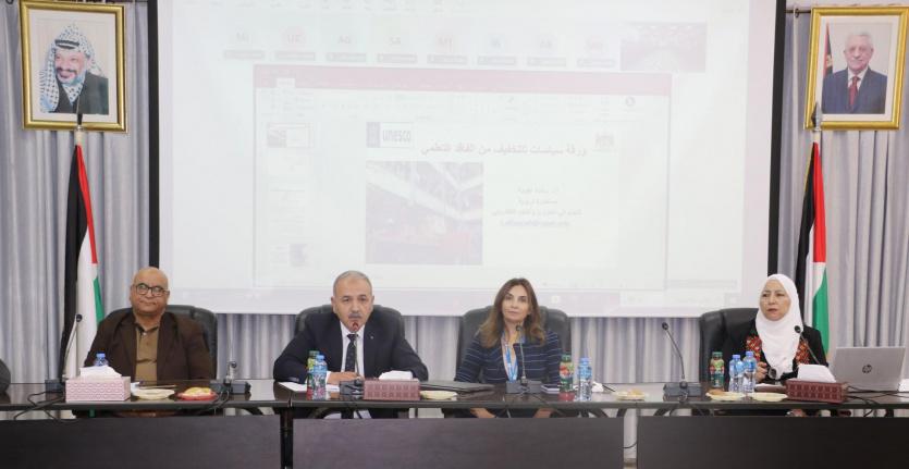في سياق جهود وزارة التربية والتعليم العالي لتطوير السياسات التعليمية ومعالجة الفاقد التعليمي، نظّمت الوزارة، بالتعاون مع مكتب اليونسكو في فلسطين ومجموعة التعليم في الضفة الغربية، ورشة عمل بعنوان "وثيقة السياسات الخاصة بالفاقد التعليمي".