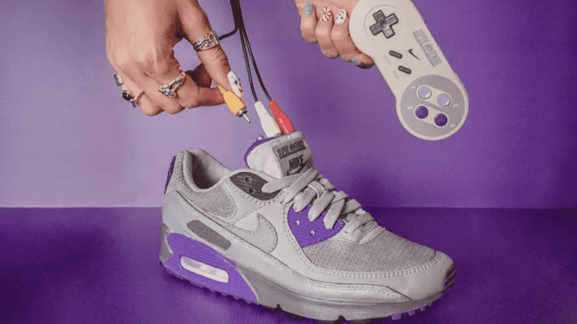 أطلق المصمم Gustavo Bonzanini على الحذاء اسم AIR SNES، وهو نسخة مخصصة من حذاء Nike Air Max 90 تعمل كجهاز ألعاب وظيفي تماماً.