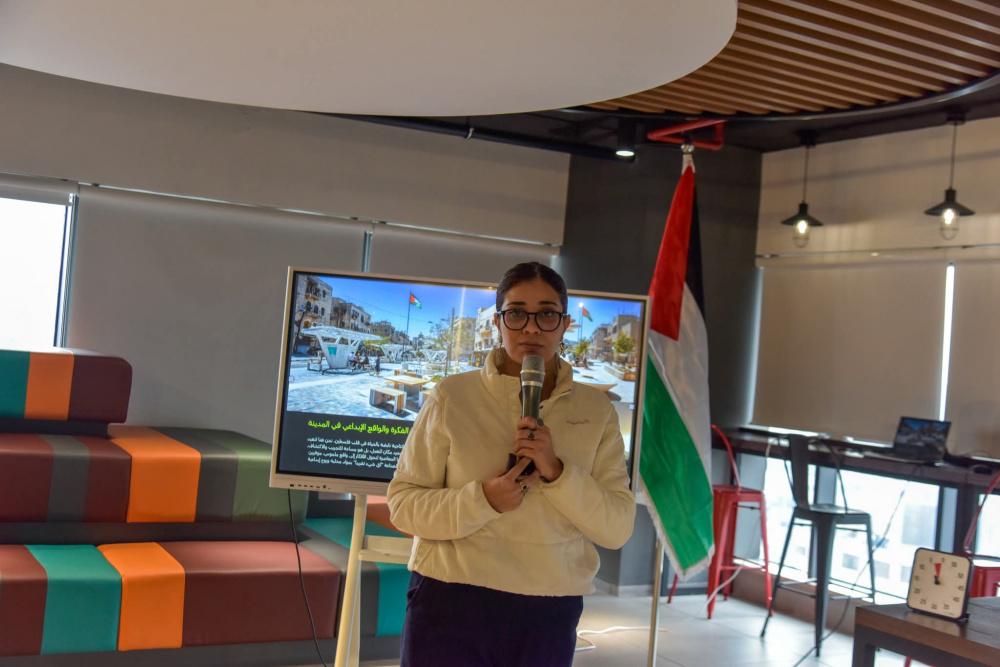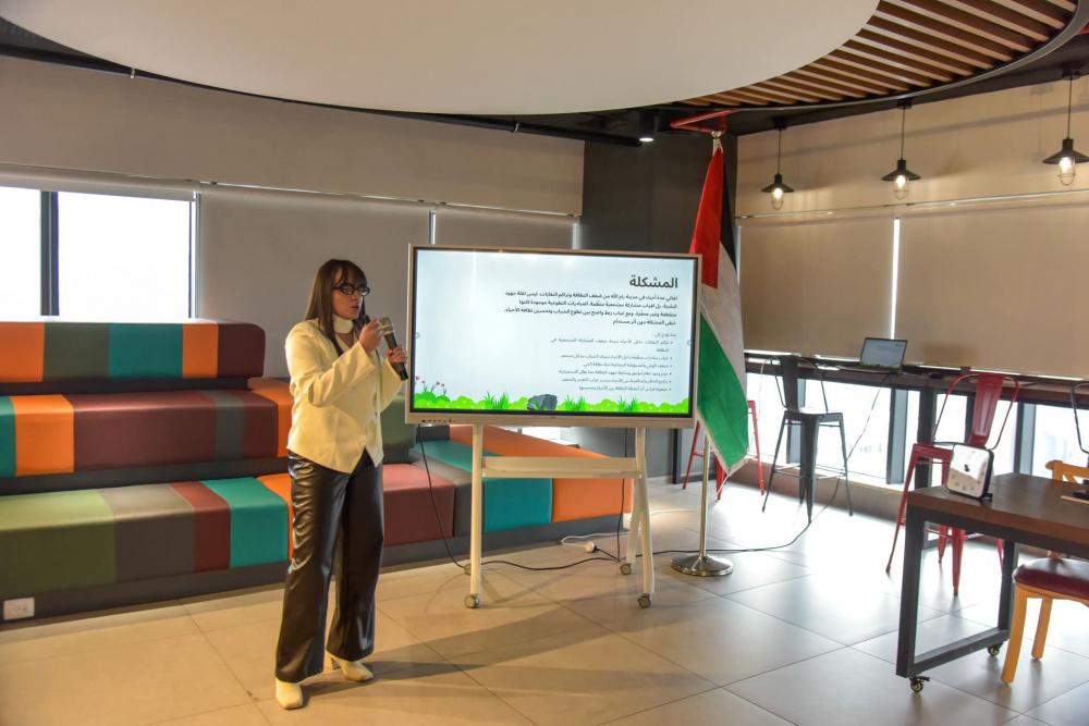 وخلال اليوم الختامي، قدمت لمى عمرو من مؤسسة بيلد باليستاين عرضًا تناول منهجية العمل مع الرياديين، موضحة مراحل تطوير الأفكار وآليات الإرشاد والتوجيه التي رافقت المشاركين منذ اليوم الأول، مما أتاح لهم تطوير مشاريع قابلة للتطبيق وذات أثر ملموس على البيئة المحلية.