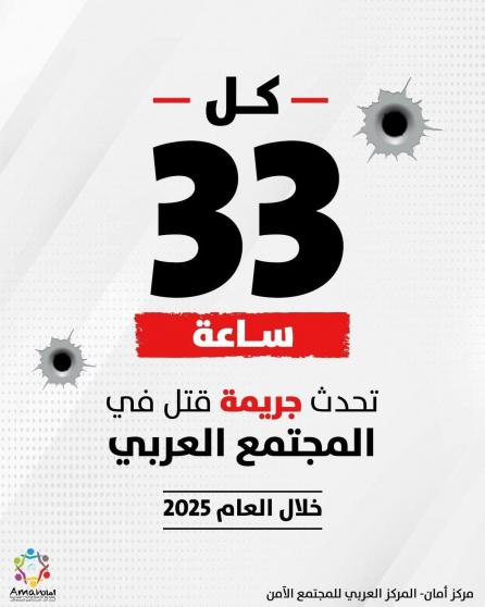 كل 33 ساعة تحدث جريمة قتل في المجتمع العربي