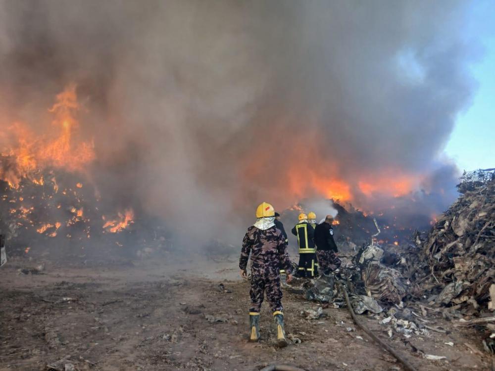 ما زالت طواقم الدفاع المدني، منذ نحو 16 ساعة متواصلة، وبمساندة من المؤسسة الأمنية والأهالي، تعمل على التعامل مع حريق هائل اندلع في مصنع للخردة بمحافظة أريحا.