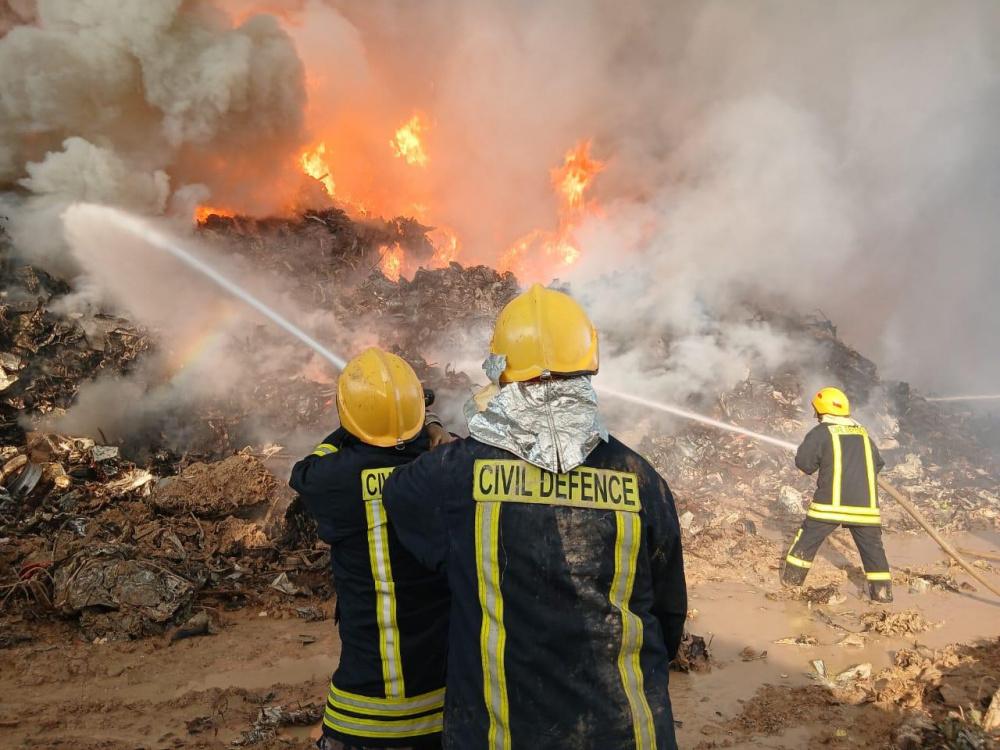 وأشار الدفاع المدني إلى أن ارتفاع الخردة في بعض المواقع يتجاوز 15 مترًا، وتحتوي على مواد بلاستيكية وكيماوية ناتجة عن مخلفات المركبات المستخدمة في منتجات المصنع، ما يزيد من صعوبة عمليات الإطفاء.