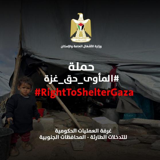 غرفة العمليات الحكومية ووزارة الأشغال العامة والإسكان تطلقان حملة "المأوى حق غزة"