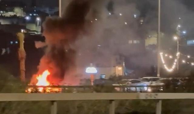 وأظهر توثيق مصور، قيام متظاهرين بإشعال النار بإطارات وأغراض أخرى في وسط الشارع باتجاه شفاعمرو، ما تسبب بحركة سير في المكان.