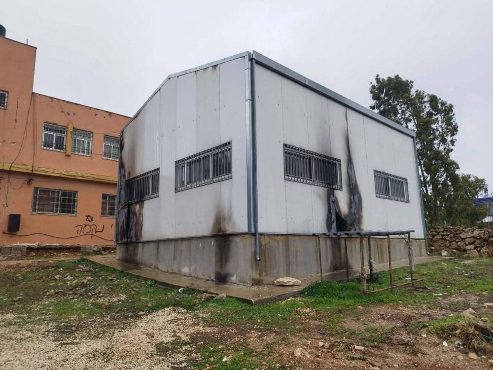 شاهد | مستوطنون يحرقون غرفة صفية في مدرسة جالود جنوب نابلس