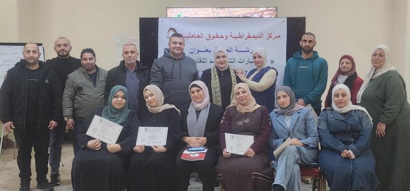 جاء ذلك خلال اختتام الدورة التدريبية التي نفذتها وحدتي القانون والثقافة والتدريب في مركز الديمقراطية وحقوق العاملين بالشراكة مع عدد من النقابات، بعنوان "مهارات التنظيم النقابي"، وذلك ضمن مجموعة التدريبات التي يقدمها المركز في إطار جهوده المستمرة لتعزيز التنظيم النقابي وبناء قدرات النقابات الشريكة، بمشاركة نقابيين ونقابيات يمثلون نقابات العاملين في الصناعات الغذائية والزراعية وبلديتي ترقوميا وقلقيلية وموظفي الخدمات البريدية في بيت أمر، والصحية بفرعيها طولكرم والخليل والعاملات في رياض الاطفال والمدارس الخاصة.