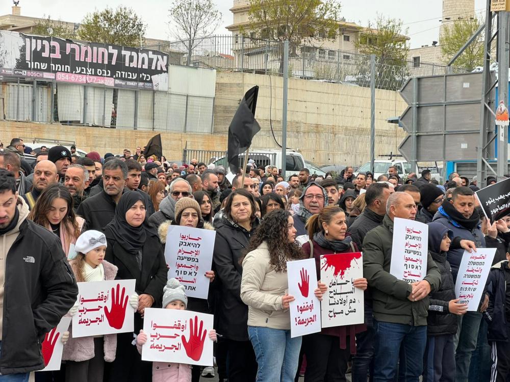 وأضاف أن وحدة الجماهير العربية، بمختلف أحزابها ومؤسساتها وشرائحها، تشكل عنصر القوة الأساس في مواجهة الجريمة، مشيرًا إلى أن السياسات الحكومية الحالية تسهم في تغذية العنف، وتحاول إبعاد المجتمع العربي عن قضاياه الوطنية والإنسانية.