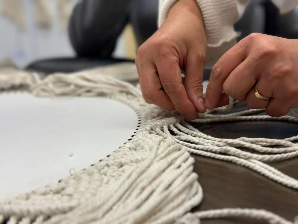 وأوضحت اسليم أن فن المكرمية يُعد من أقدم فنون النسيج العربي، حيث اعتمد تاريخيًا على عقد الحبال، وكان يُستخدم في شباك الصيد لدى عرب الساحل، قبل أن يتطور ليشمل الجداريات والمعلّقات والقطع الفنية المتنوعة.