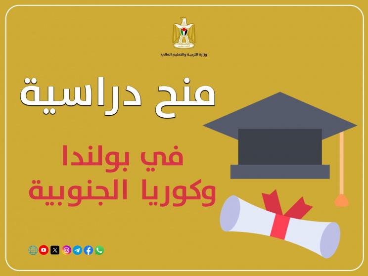 كما أعلنت الوزارة عن توفر ثلاث منح دراسية في كوريا الجنوبية للعام الدراسي 2026-2027 بمجال الدراسات العليا (ماجستير ودكتوراة).