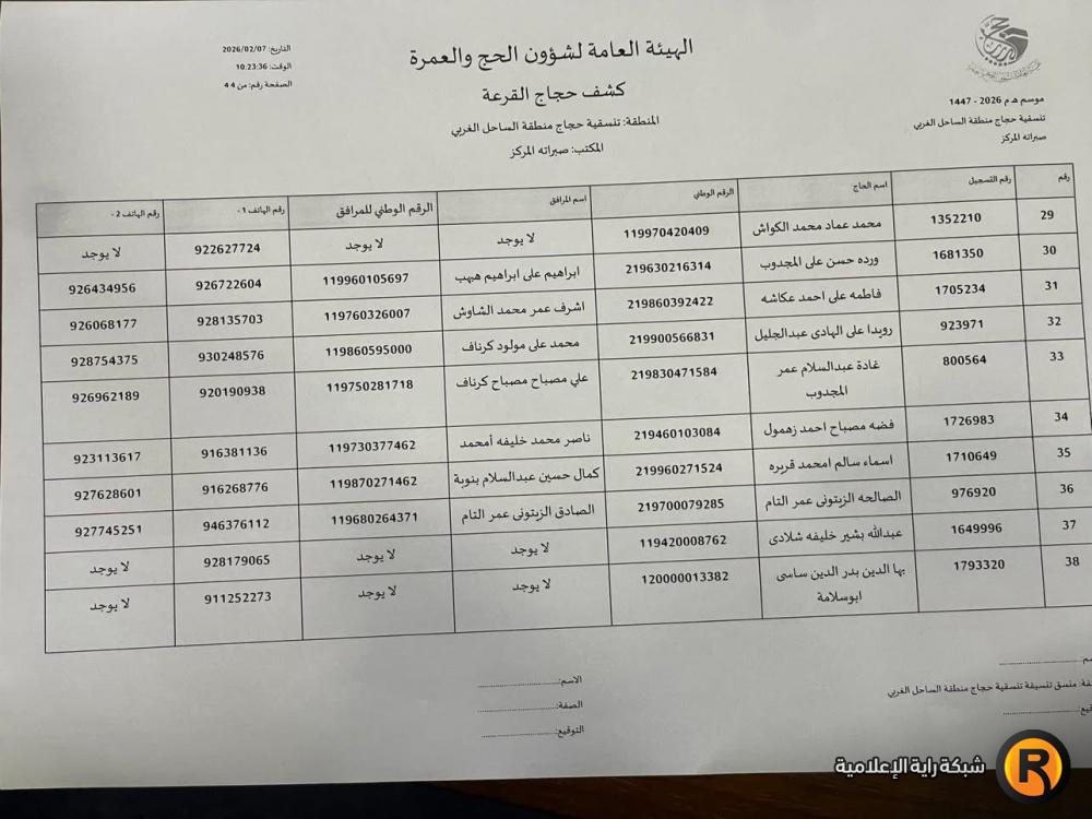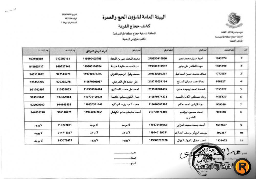 نتائج أسماء الفائزين في قرعة الحج ليبيا 2026 عن منطقة زوارة