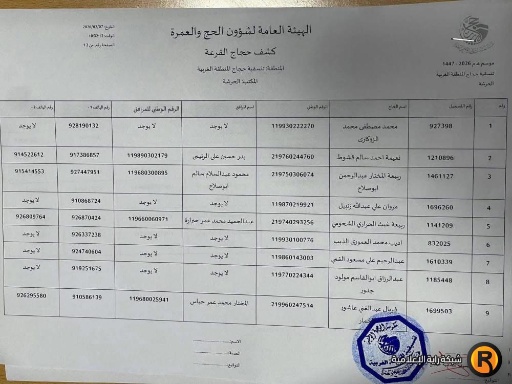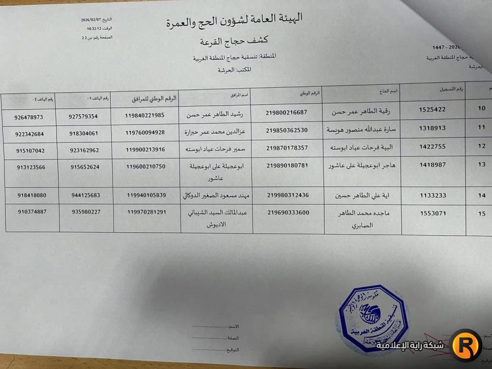 نتائج أسماء الفائزين في قرعة الحج ليبيا 2026 عن مكتب الزاوية الحرشة
