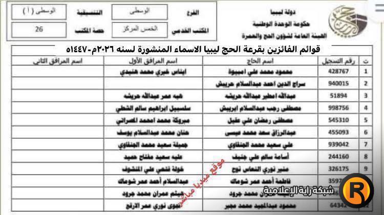 نتائج أسماء الفائزين في قرعة الحج ليبيا 2026 حجاج طرابلس حي الاندلس