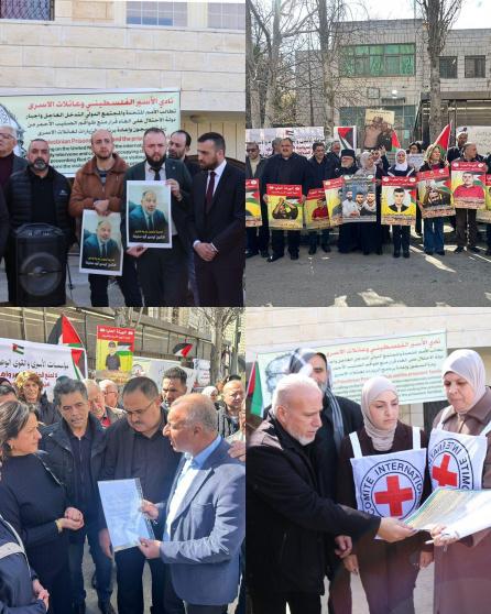 وقفات في الضفة أمام مقار الصليب الأحمر للمطالبة بالضغط لاستئناف الصليب زيارة الأسرى المتوقفة منذ الإبادة