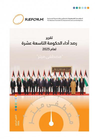 أصدرت المؤسسة الفلسطينية للتمكين والتنمية المحلية—REFORM تقريرها السنوي السابع المتخصص برصد أداء الحكومة الفلسطينية التاسعة عشر "مصطفى ميتر"، وركزَّ التقرير، بنسخته السابعة، على قياس مدى تنفيذ الحكومة لالتزاماتها التي أعلن عنها رئيس الحكومة التاسعة عشر في خطاب الرد على كتاب تكليفه رئيساً للوزراء، وَفحَص سرعة استجابة الحكومة بوزاراتها المختلفة، لاسيما الخدماتية منها، على استفسارات المواطنين حول خدماتها التي تقدمها. كما رصد التقرير زيارات الوزراء (أعضاء مجلس الوزراء)، وجولاتهم التفقدية للمديريات في المحافظات والاطلاع على سير العمل فيها على مدار العام 2025. واستعرض التقرير انطباعات الجمهور حول أداء الحكومة وفقا لاستطلاع رأي عام الذي أجرته المؤسسة في نهاية العام 2025 من خلال شركة متخصصة باستطلاعات الرأي.