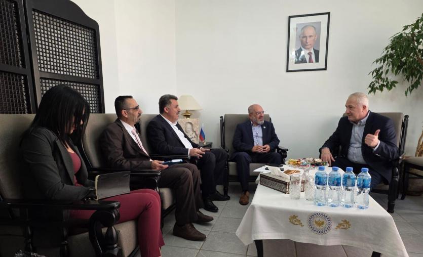 وشارك في اللقاء كذلك السيد جمال ملحم عضو مجلس إدارة الجمعية، ورشا عرار منسقة العلاقات الدولية في الجمعية حيث أكدوا أهمية البناء على الاتفاقية الموقعة وتكثيف التواصل مع الجانب الروسي بما يخدم مصالح رجال الأعمال في كلا البلدين.