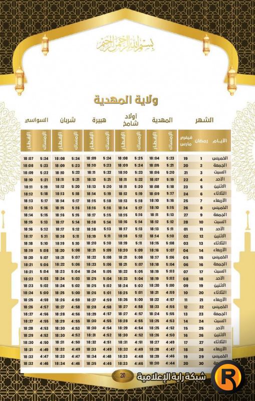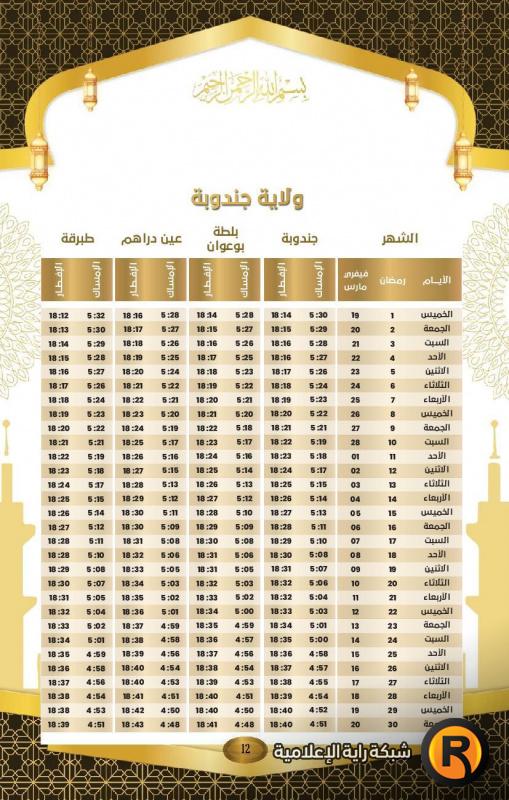 إمساكية رمضان 2026 في جميع ولايات تونس