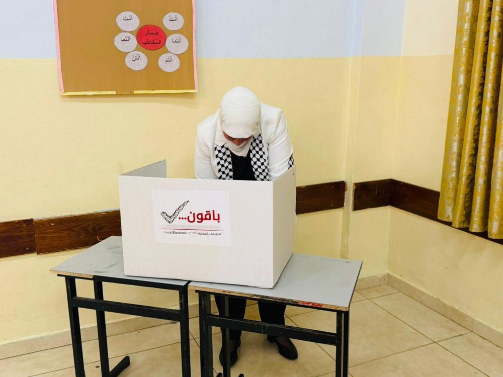 بالصور| غنام تدلي بصوتها في الانتخابات المحلية بدير دبوان