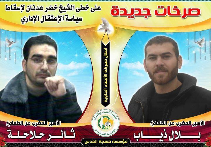 وقالت المصادر لـ"فلسطين اليوم" أن المحكمة أوصت النيابة العامة بالتوصل لاتفاق مع الأسيرين بلال ذياب وثائر حلاحلة كحل لإنهاء إضرابهما عن الطعام , كما حدث مع الأسيرين خضر عدنان , وهناء شلبي.