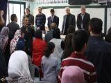 وإستقبل طلبة من مدرسة أمين الحسيني، والمدرسة الهاشمية والمدرسة الأسبانية الشاعر في حضور المغنية الفلسطينية ريم تلحمي و الشاعر مفلح الطبعوني، ومدير المدرسة ياسر القصراوي، و الكاتب و المعلم زياد خداش، والشاعر ضياء البرغوثي، والكاتب زياد الجيوسي.