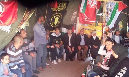 خيمة تضامن مع الأسرى المضربين عن الطعام في الطيرة داخل أراضي 48