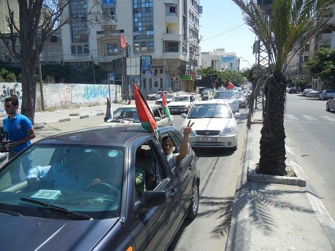 وتضمنت المسيرة المحمولة بالسيارات رفع العلم الفلسطيني وصور الأسرى في السجون وخاصة المضربين منهم.
