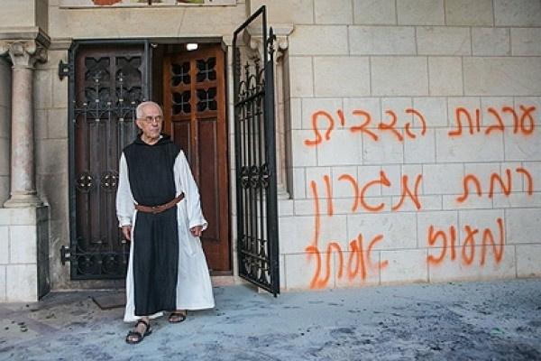 وصلنا إلى الكنيسة سيرا على الأقدام، بعد إغلاق الشوارع في عيد اليهود المظلة (العُرش) إلى جبل صهيون، حيث تقع الكنيسة المستهدفة والتي تم إغلاقها للترميم. عمال داخل الكنيسة هم من اكتشفوا الشعارات وطلبوا من أحدهم يقرأ العبرية أن يفسرها، وقاموا بالاتصال بالمسؤولين الذين حضروا على الفور.