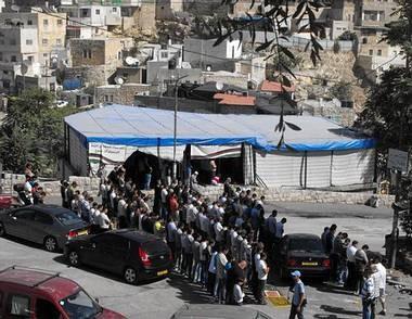 أدى مئات المواطنين صلاة الجمعة اليوم في خيمة الاعتصام في حي البستان بسلوان في مدينة القدس المحتلة، وذلك استمرارا لفعاليات أهالي الحي في مواجهة قرار سلطات الاحتلال بهدم منازلهم والبالغة 88 منزلا يقطنها 1500 مواطن، جنوب البلدة القديمة.