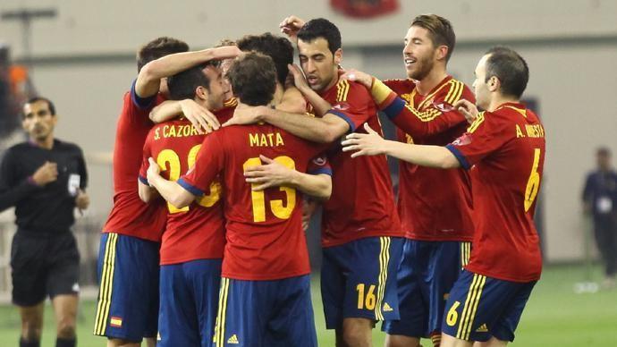 وبدأ المنتخب الإسباني يمتلك الكرة بشكل واضح تدريجياً معتمداً على التمريرات القصيرة بين لاعبيه، لكن أوّل تسديدة له على مرمى منافسه تأخّرت حتى الدقيقة التاسعة بقدم سيرخيو بوسكيتس، وأمسكها الحارس فرناندو موسليرا دون عناء (9).