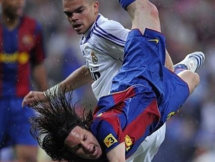 وحظيًّ مدافع ريال مدريد، الدولي البرتغالي كليبر بيبي، بنصيب الأسد من تلك اللقطات التي عرضت في المقطع القصير، حيث دأب مدافع ريال مدريد على ارتكاب الأخطاء خلال مباريات الفريقين، والتي لطالما اشتكى منها نجوم "البلوغرانا" وعلى رأسهم النجم الأرجنتيني ليونيل ميسي.