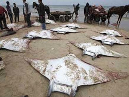 صيادو غزة تمكنوا خلال يوم واحد من اصطياد أكثر من 400 سمكة فريدة من نوع "وطواط البحر".