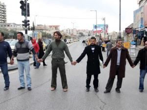 وأغلق المعلمون المتظاهرون مفترق "باب الزقاف" وسط بيت لحم جزئياً أمام حركة السيارات.