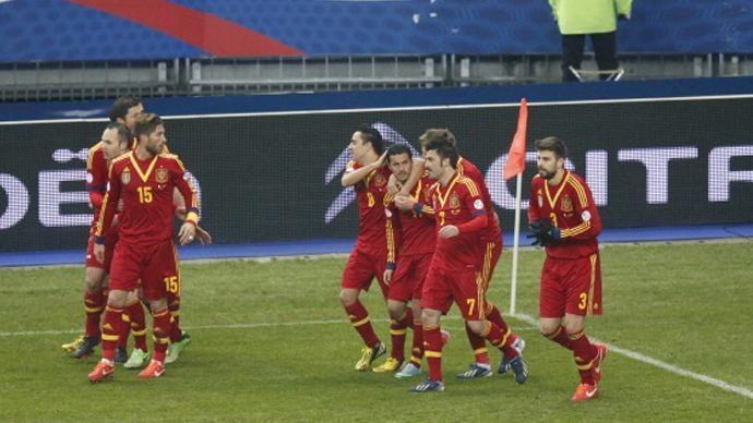 رام الله-شبكة راية الإعلامية: استعاد منتخب إسبانيا لكرة القدم، بطل العالم وأوروبا، صدارة المجموعة التاسعة بعدما أطاح بجاره ومضيفه الفرنسي 1-صفر امس الثلاثاء على ملعب فرنسا في سان دوني ضمن تصفيات أوروبا المؤهلة الى نهائيات كأس العالم في البرازيل عام 2014.