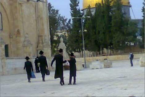 وتقوم العناصر اليهودية المتطرفة بالتجوال في باحات ومرافق المسجد المبارك، وخاصة في المنطقة المعروفة باسم 'الحُرش'التي تقع بين باب الاسباط والمُصلى المرواني، وتحاول أداء شعائر وطقوس تلمودية فيها.